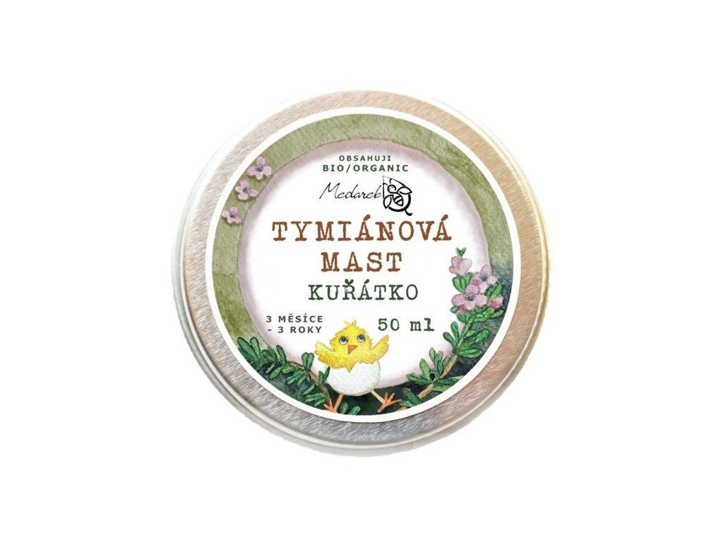 Zcela přírodní a 100% bio (organická) mast je vhodná pro podporu organismu při nachlazení. Kuřátko je vhodné pro děti od 3 měsíců do 3 let.